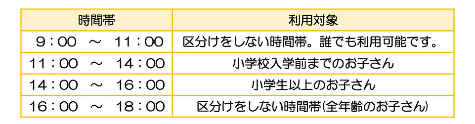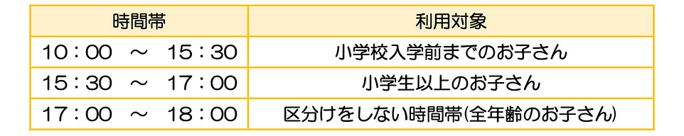プレイルームで遊ぶ児童の安全を考えて、下記の利用時間とさせていただいております。